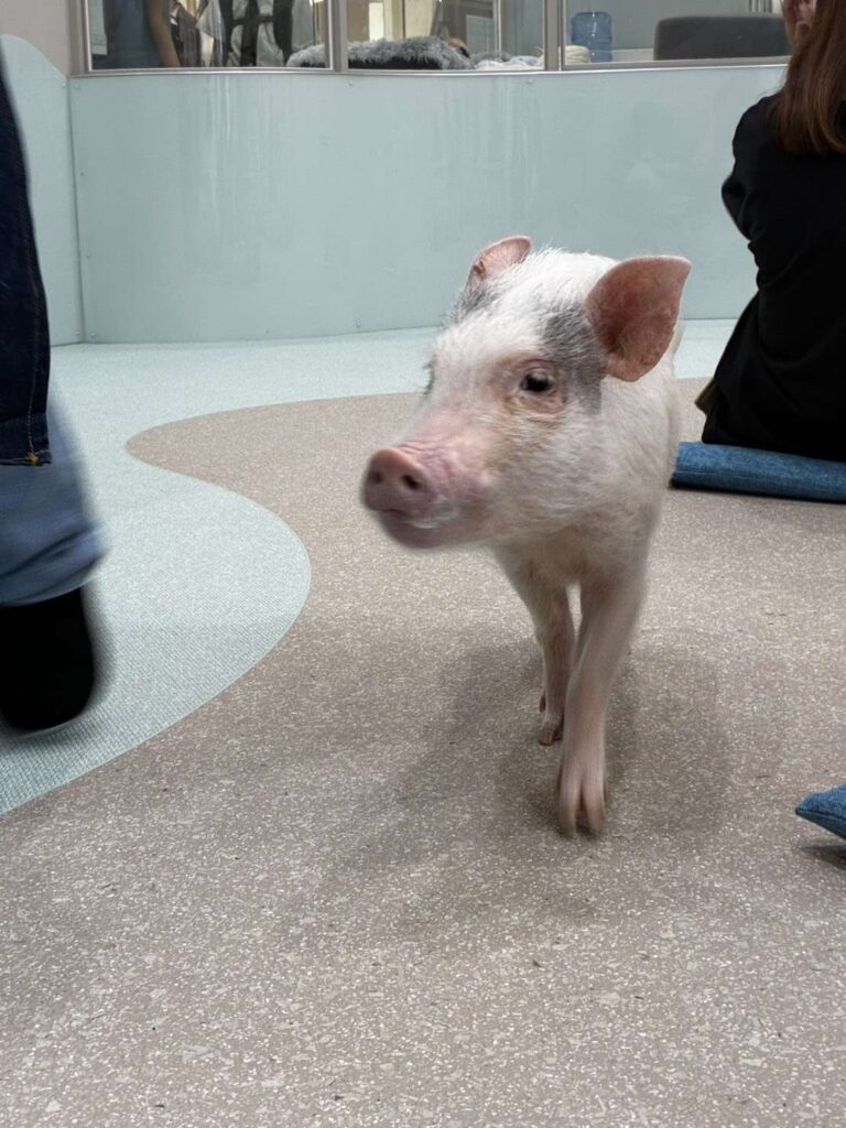 ふれあいスペースでは、ブタさんが自ら寄ってきてくれることもあれば、気分によっては遠くでのんびりしていることもあり、まさに“気まぐれな癒し”を体感できます。