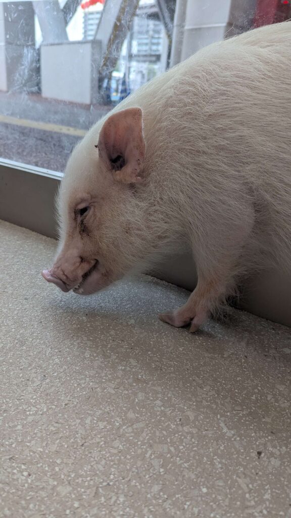 ふれあいは一期一会 ブタさんたちは全員が常に店内にいるわけではなく、交代制で休憩を取っているそうです。そのため、タイミングや混雑状況によってはあまり寄ってきてくれないことも。